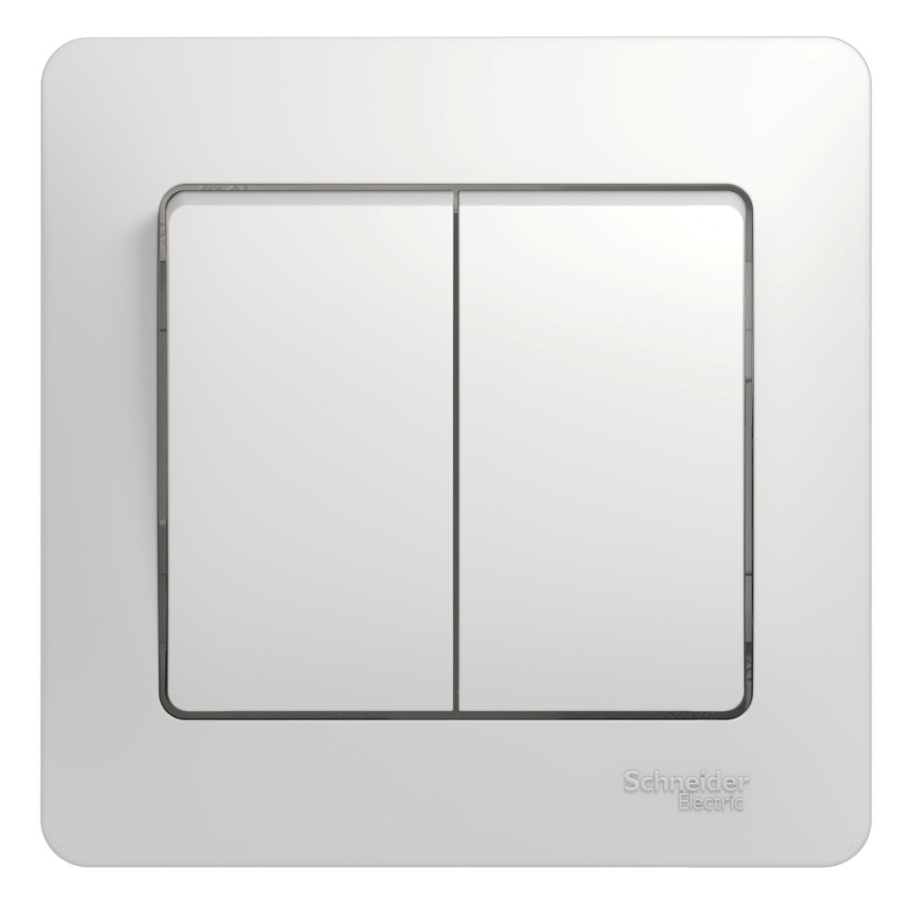 Выключатель 2-х клавишный, в сборе с рамкой, белый, Systeme Electric, серия Glossa