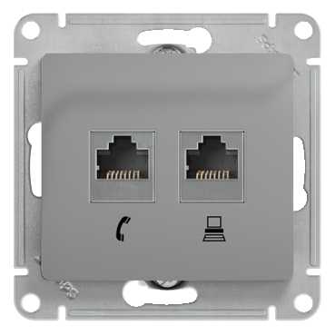 SE Glossa Розетка комбинированная, RJ11 + RJ45 кат.5е, алюминий