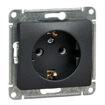 Розетка 220v, с заземлением, антрацит, Systeme Electric, серия Glossa