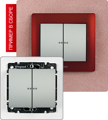 Выключатель двухклавишный проходной с подсветкой Legrand Galea Life, на винтах, алюминий