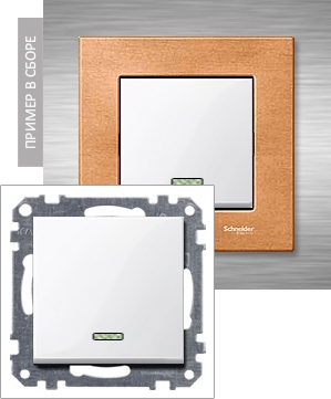 Выключатель одноклавишный проходной с подсветкой Merten System M, на клеммах, активный белый