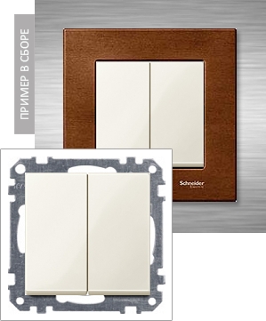Выключатель двухклавишный проходной Merten System M, на клеммах, бежевый