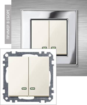 Выключатель двухклавишный проходной с подсветкой Merten System M, на клеммах, бежевый