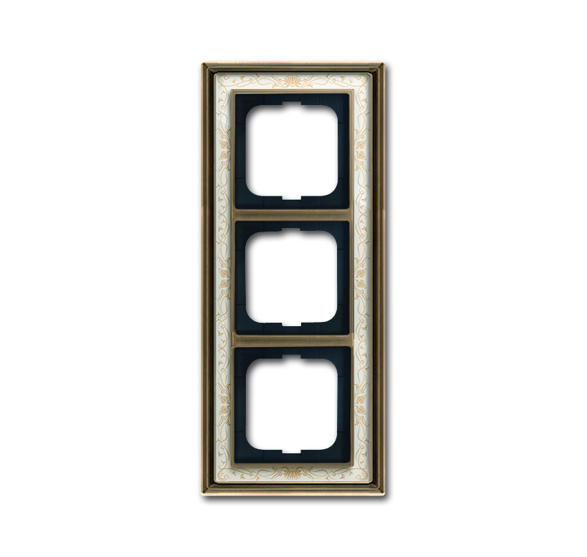 Abb BJE Рамка 3-постовая, серия Династия, Латунь античная, белая роспись