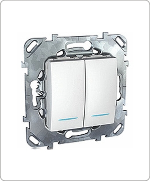 Выключатель двухклавишный перекрёстный с подсветкой Schneider Electric Unica, на клеммах, белый