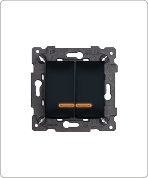 Выключатель двухклавишный проходной с подсветкой Fede Marco, на клеммах, черный