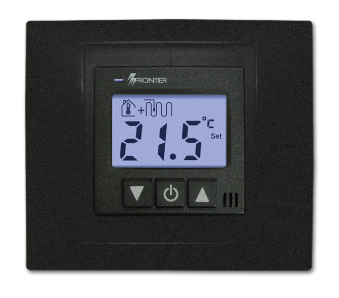 Терморегулятор Frontier TH-0502RS с датчиком пола и воздуха, механизм цвета графит матовый с рамкой черного цвета