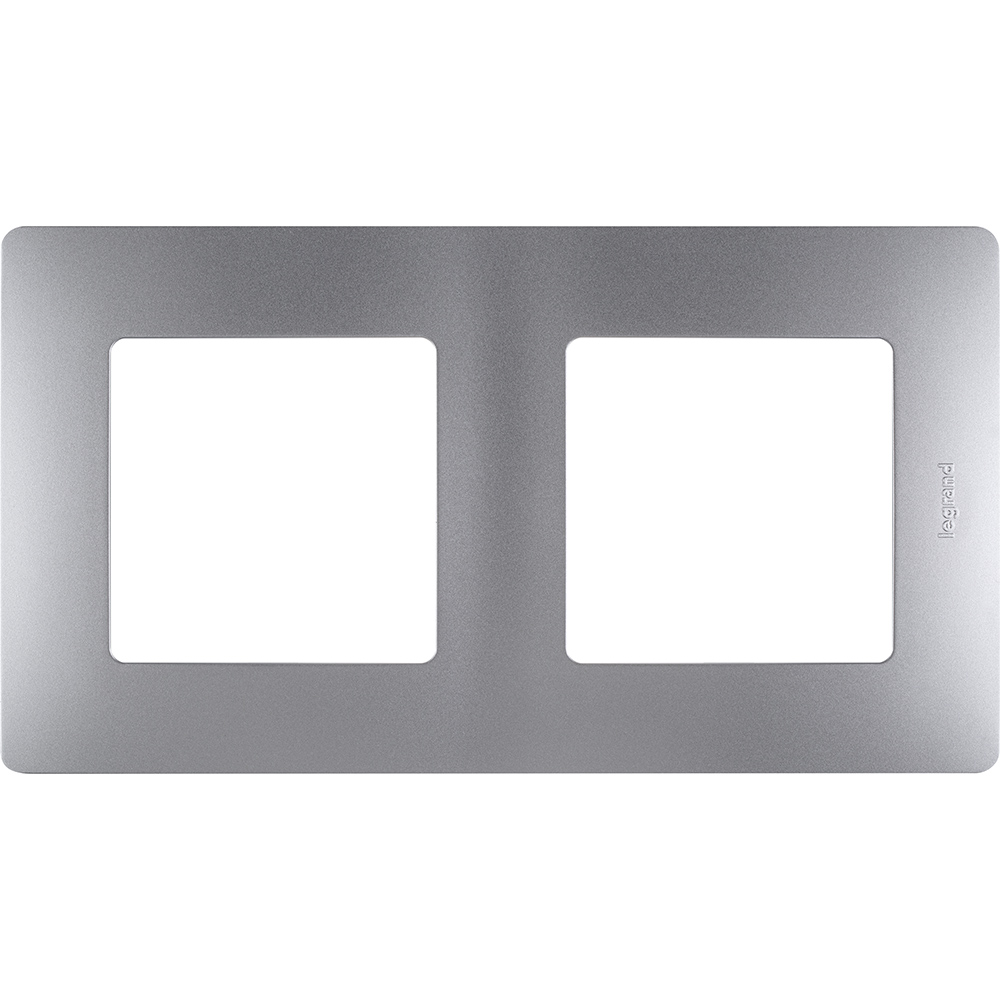 Рамка Legrand Etika на 2 поста, универсальный монтаж, алюминиевый цвет, поликарбонат, IP20, немецкий стандарт