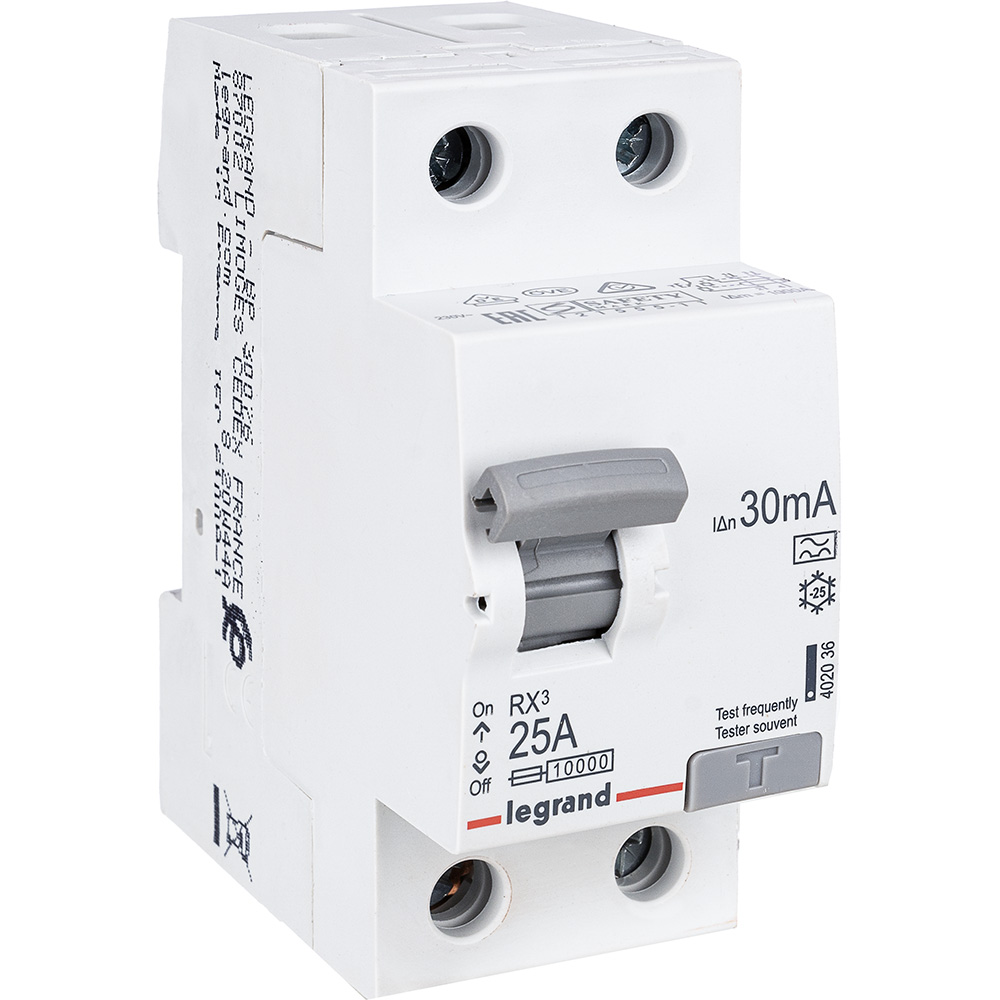 Выключатель дифференциального тока (УЗО) Legrand RX3, 25A, 30mA, A, 2 полюса, 2 модуля