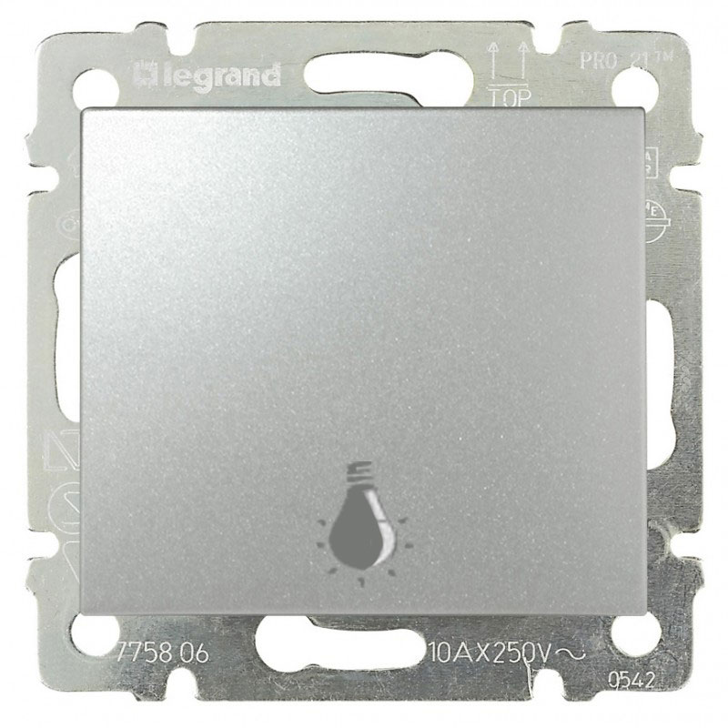 Выключатель без фиксации с символом лампы Legrand Valena 10 A - 250 В VLN, алюминиевый цвет