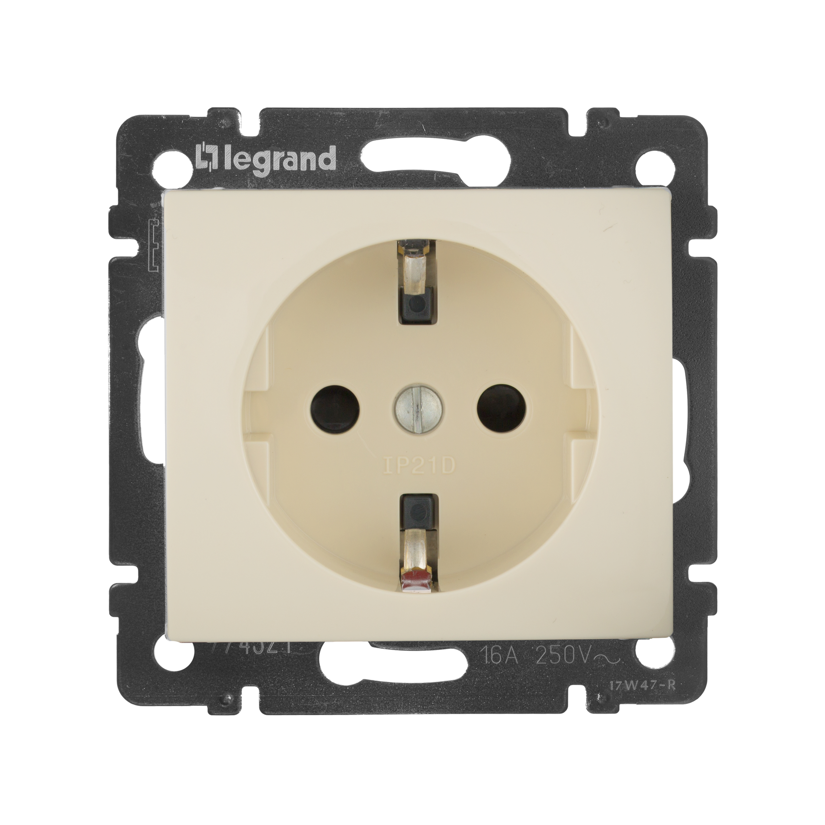 Розетка встраиваемая с заземлением Legrand VLN сл кость, термопласт, 16А, IP20, без подсветки, на винтах, со шторками