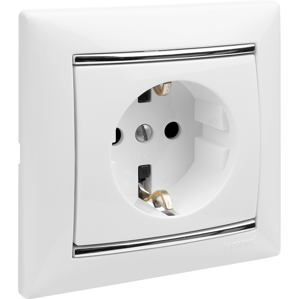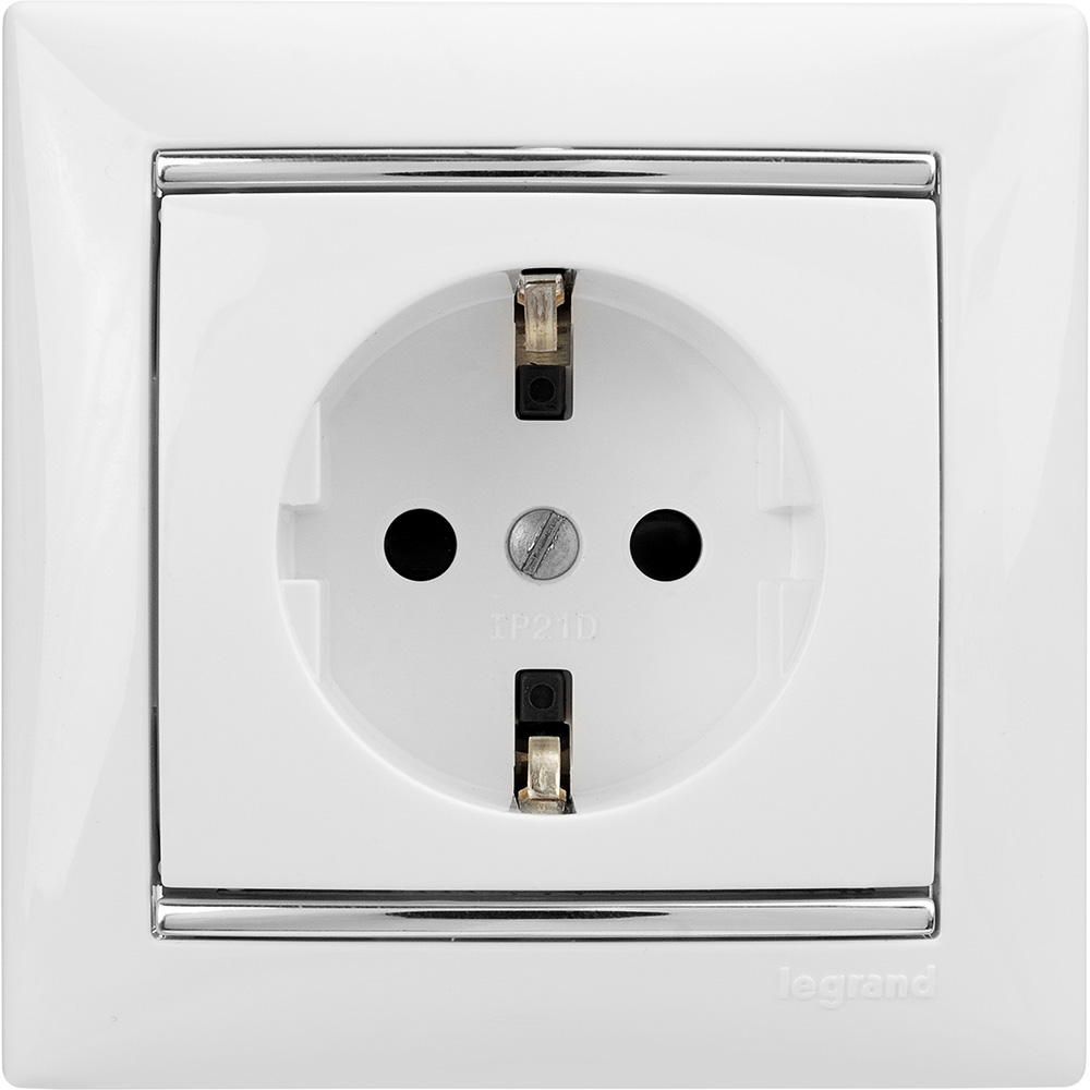 Розетка Legrand Valena с заземлением, на 2К+З, цвет белый, для электрических устройств