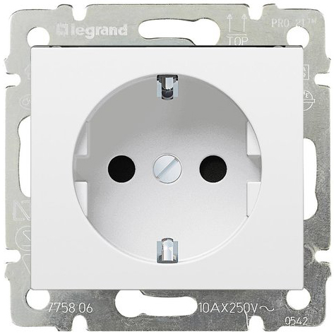 Встроенная розетка Legrand VLN с заземлением, 2К+З, цвет белый,