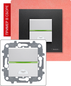 Кнопка звонка одноклавишная с символом Свет (1н.о.) с зеленой подсветкой, ABB Zenit, на клеммах, белый