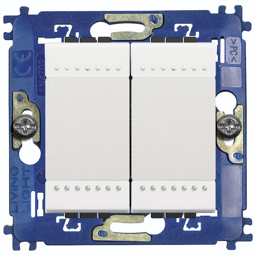 Выключатель двухклавишный проходной с подсветкой Bticino LivingLight, на винтах, белый