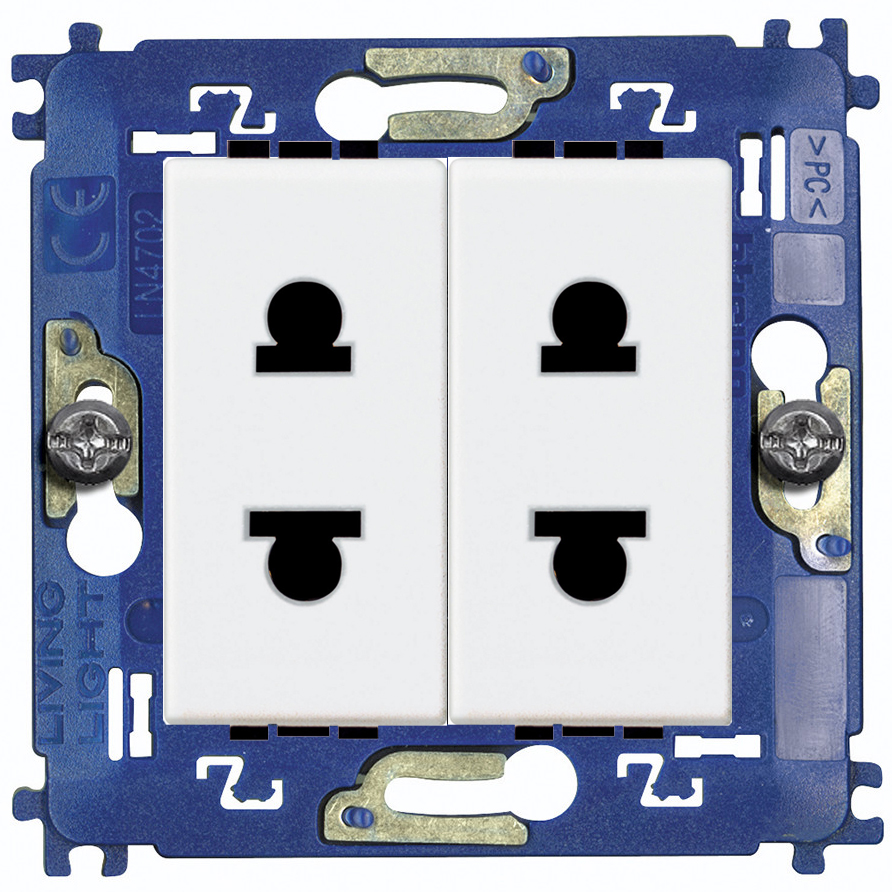 Розетка двойная евро-американского стандарта без заземления Bticino LivingLight, с защитными шторками, на винтах, белый