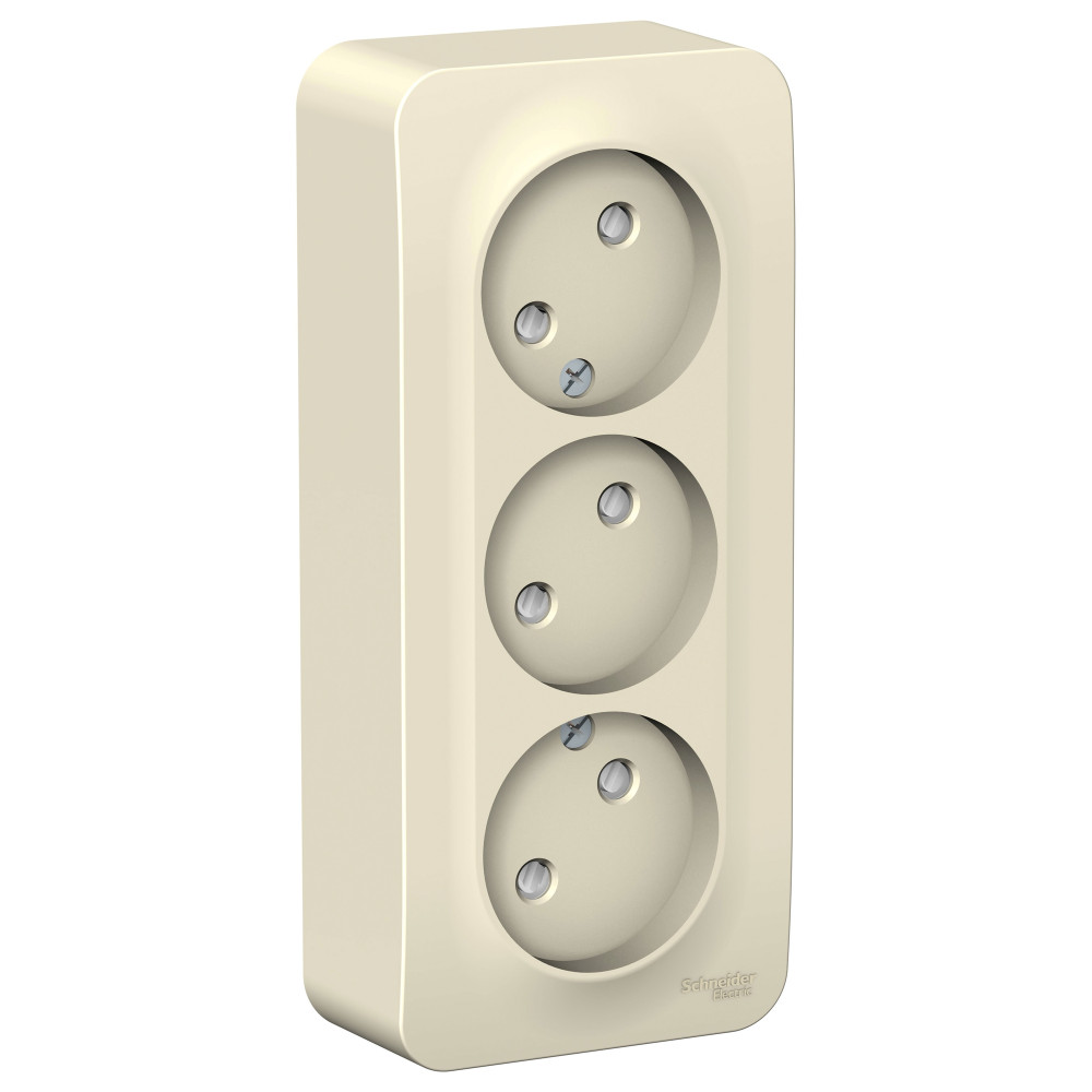 Розетка тройная без заземления Systeme Electric Blanca, с защитными шторками, на винтах, молочный