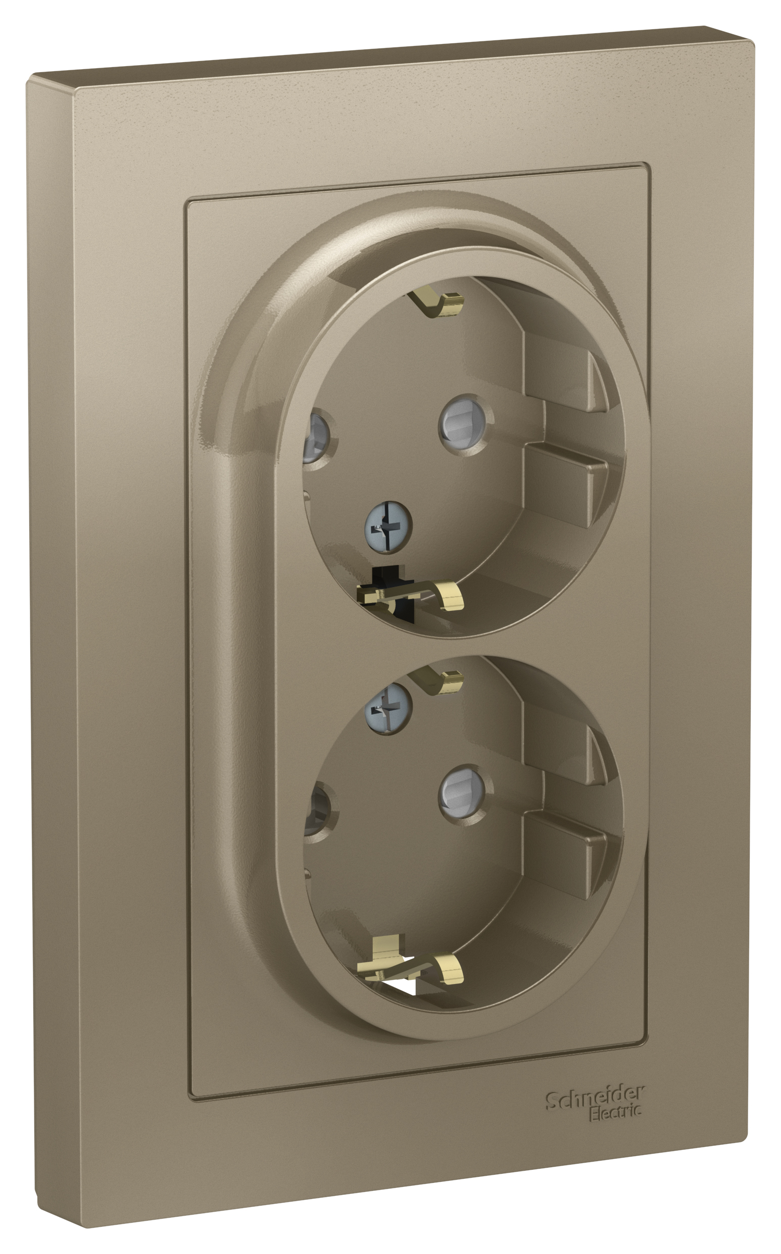 Розетка двойная с заземлением Systeme Electric Atlas Design, с защитными шторками, на винтах, шампань