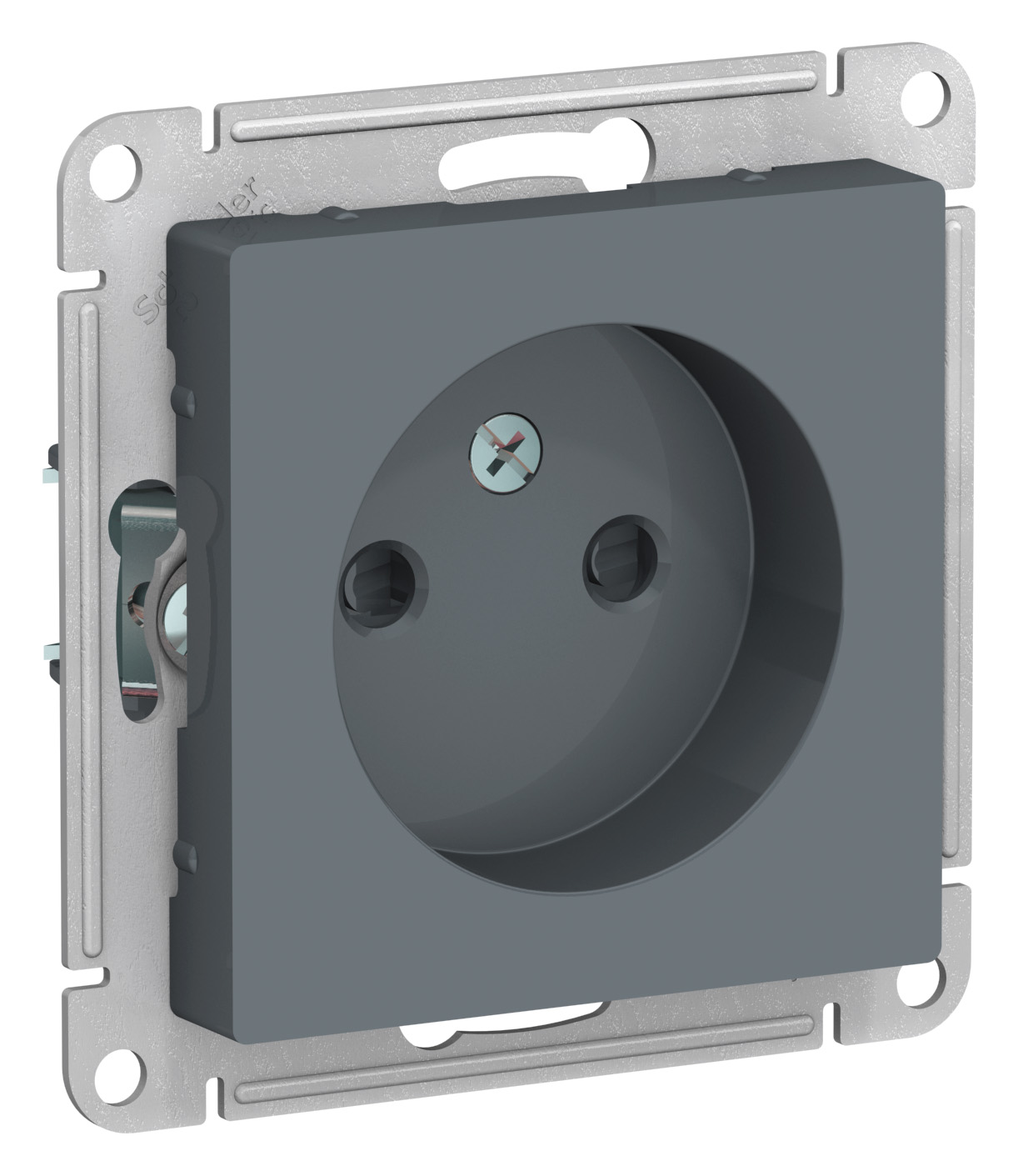 Розетка без заземления Systeme Electric Atlas Design, с защитными шторками, на винтах, грифель