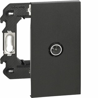 Розетка TV простая, штыревой разъём, с накладкой на 2 модуля, цвет чёрный