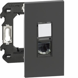 Розетка компьютерная RJ45 cat5e UTP, с джеком Hyperline и накладкой на 2 модуля, цвет чёрный