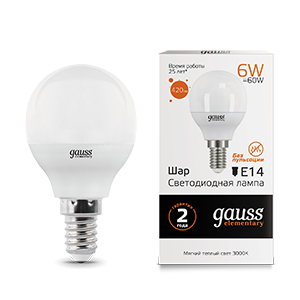 Лампа Gauss Elementary Шар, мощность 8Вт, световой поток 540 lm, температура 4100К, цоколь E14