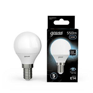 Лампа светодиодная Gauss Black Шар, 6.5W, 550lm, 4100K, цоколь E14, LED