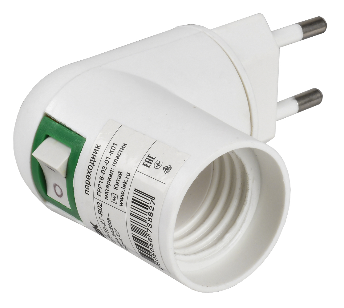 Переходник вилка 220В-патрон Е27 пластик белый IEK