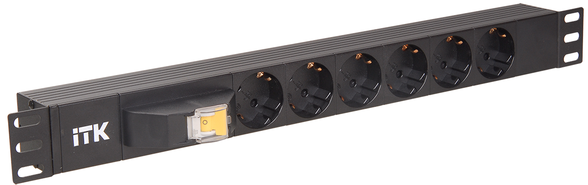 ITK PDU 6 роз. нем.ст. с выкл 1U каб. 2м вилка нем.ст ПВХ чер