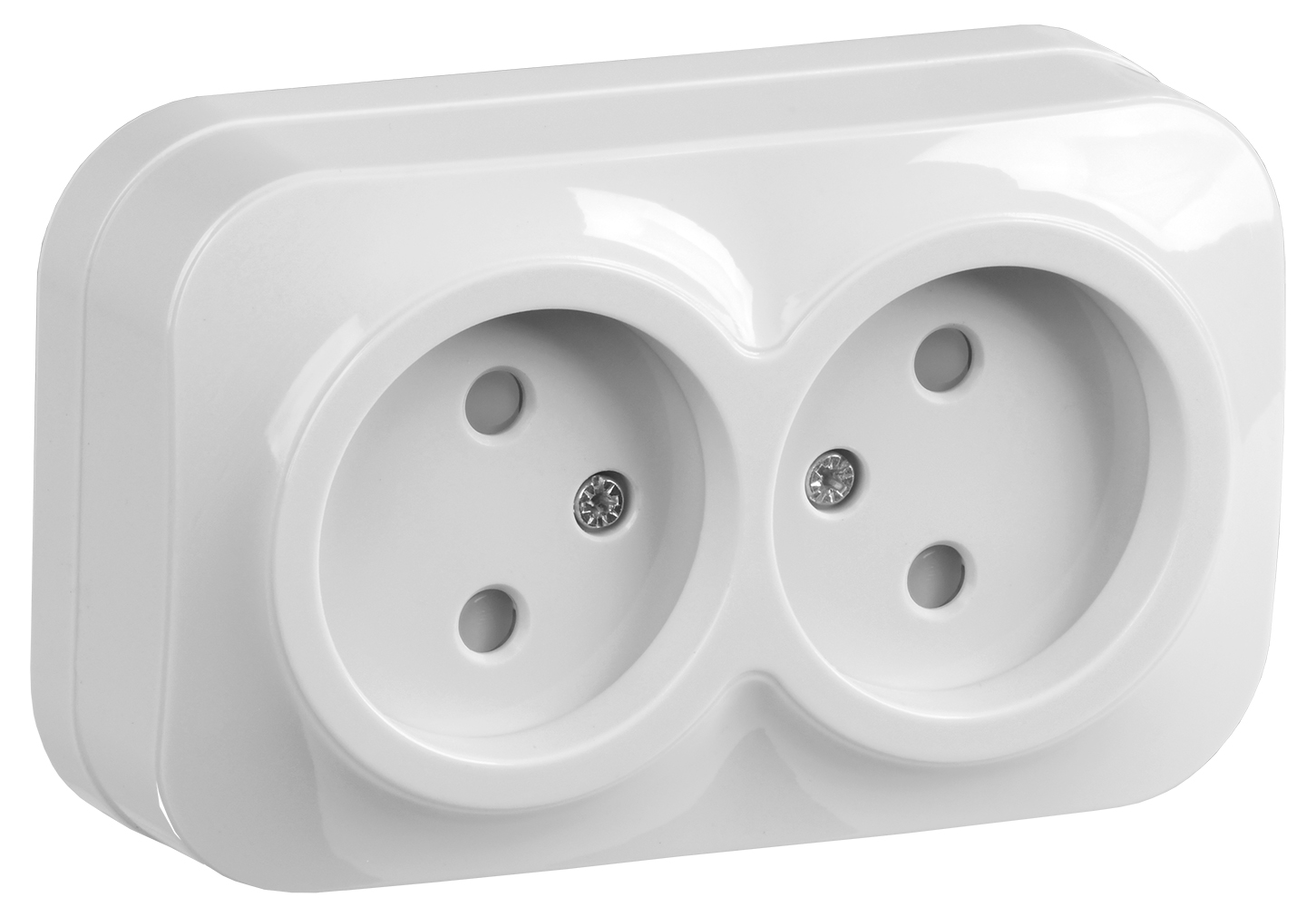 РСш22-2-ХБ Розет. 2-ая без з/к с з/ш о/у 10А GLORY белый IEK