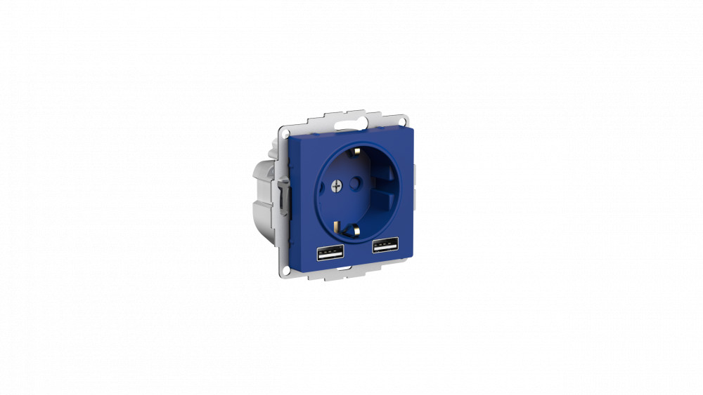 Розетка usb для зарядки Systeme Electric Atlas Design, с двумя разъёмами типа А + розетка 220в, на винтах, аквамарин