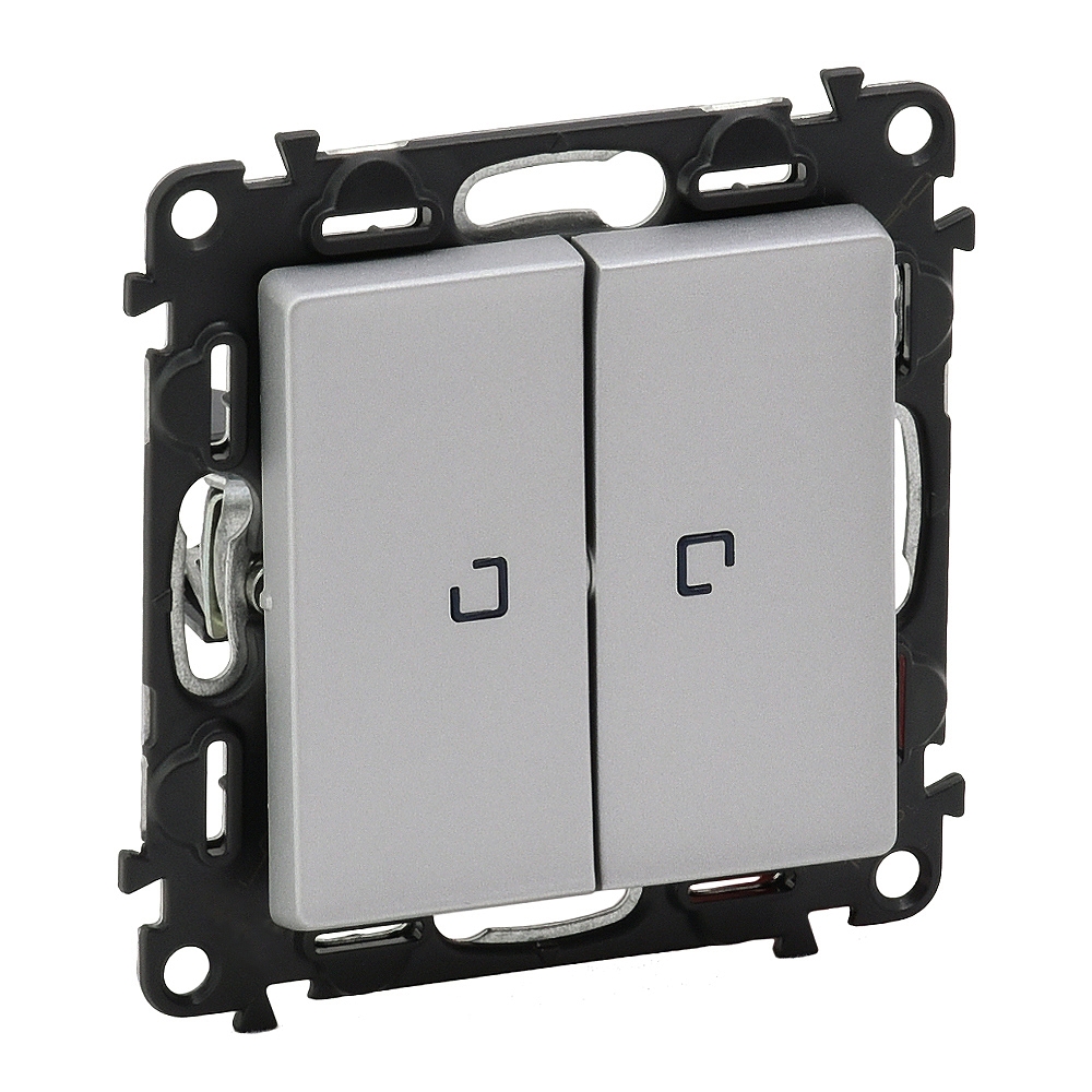 Выключатель двухклавишный проходной с подсветкой Legrand Valena Life, на клеммах, алюминий