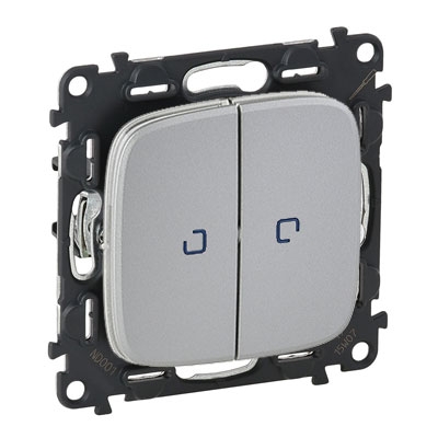 Выключатель двухклавишный с подсветкой Legrand Valena Allure, на клеммах, алюминий