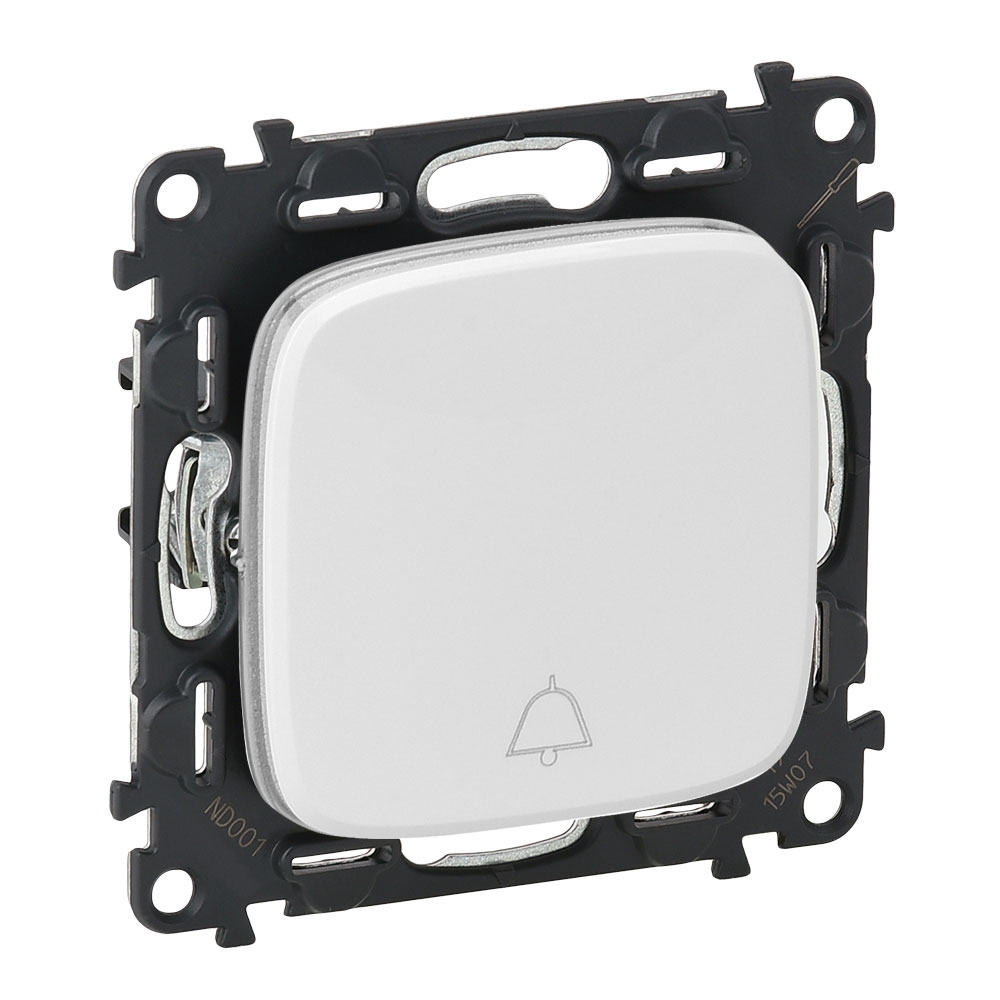 Кнопка звонка одноклавишная с символом Звонок (1н.о.+1н.з.) Legrand Valena Allure, на клеммах, белый