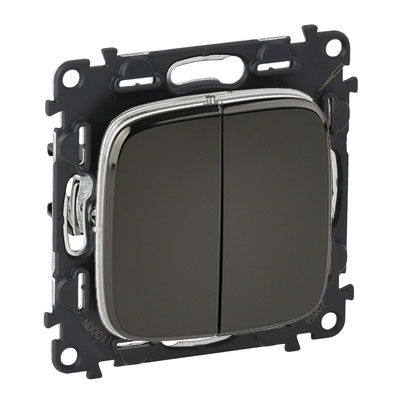 Выключатель двухклавишный проходной Legrand Valena Allure, на клеммах, сталь темная