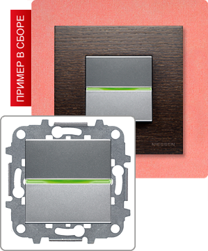 Кнопка звонка одноклавишная (1н.о.) ABB Zenit с зеленой подсветкой, на клеммах, серебро