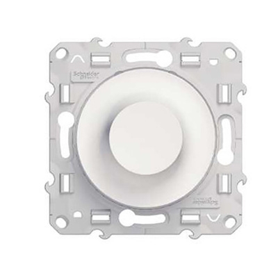 Светорегулятор поворотно-нажимной Schneider Electric Odace для ламп накаливания 230в, электронных и обмоточных трансформаторов 12в, без нейтрали, белый