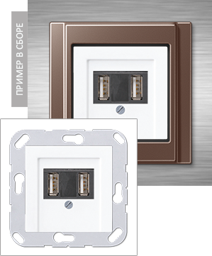 Розетка usb для зарядки Jung A, с двумя разъёмами типа А, на винтах, мокко