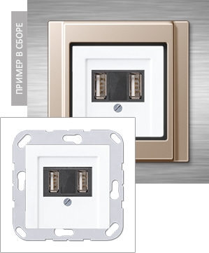 Розетка usb для зарядки Jung A, с двумя разъёмами типа А, на винтах, шампань