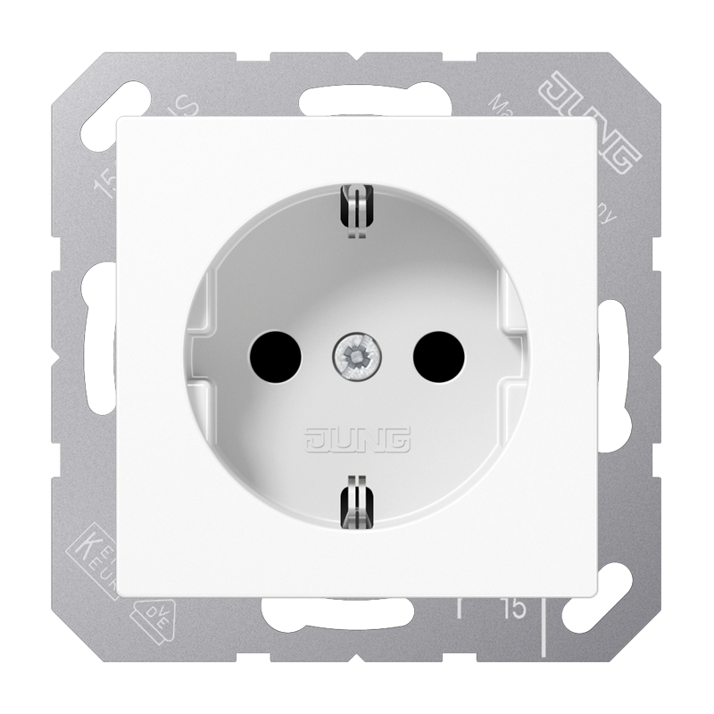 Розетка с заземлением Jung A, AS без защитных шторок, на клеммах, белый