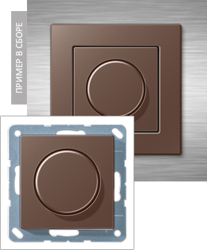 Светорегулятор поворотно-нажимной Jung A для ламп накаливания 230в и обмоточных трансформаторов 12в, без нейтрали, мокко