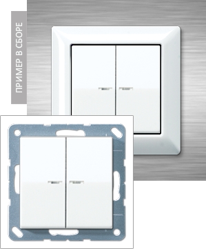 Выключатель двухклавишный с подсветкой Jung AS, на клеммах, белый