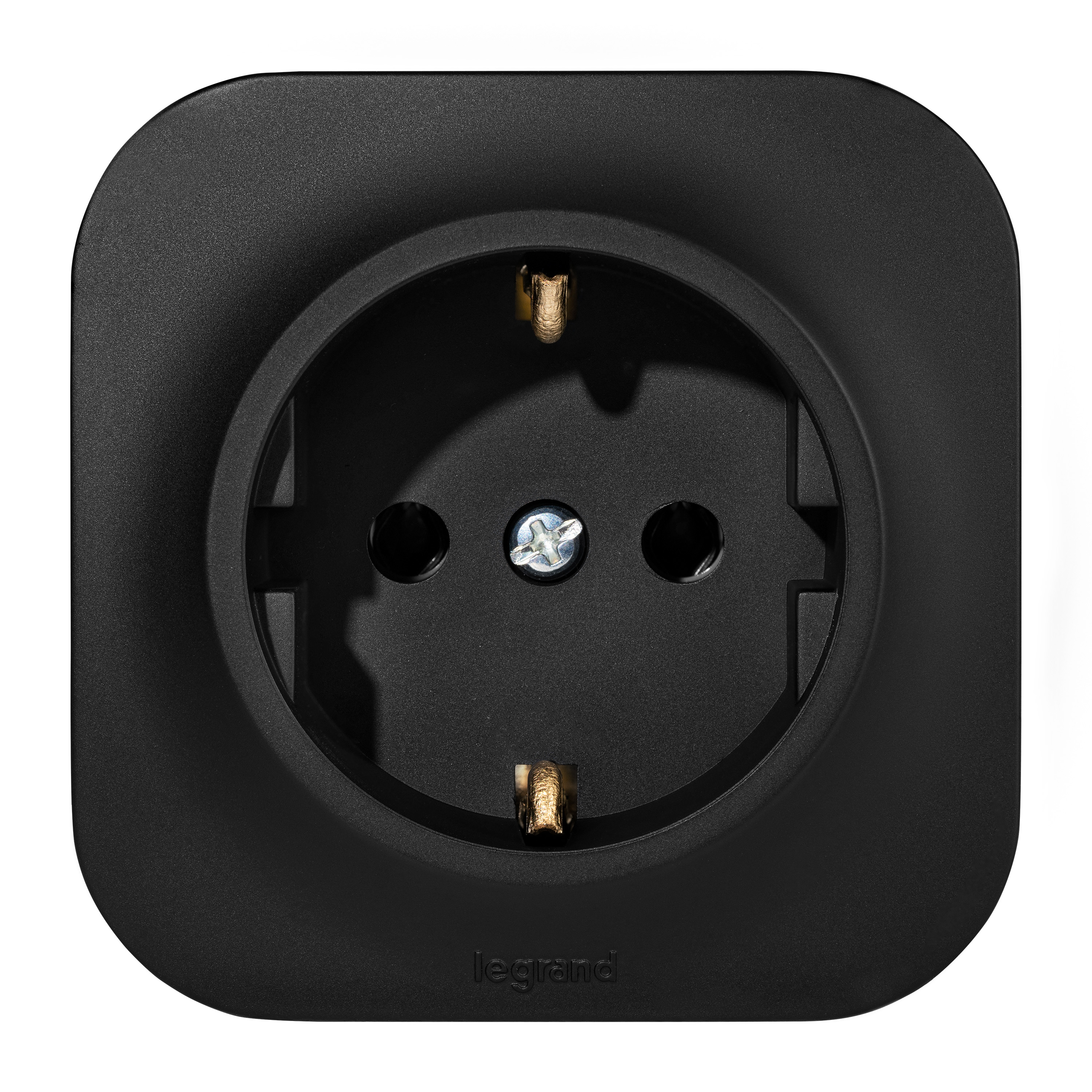Розетка с заземлением Legrand Quteo, без защитных шторок, на винтах, чёрный матовый