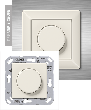 Светорегулятор поворотно-нажимной Jung AS для ламп накаливания 230в и обмоточных трансформаторов 12в, без нейтрали, слоновая кость
