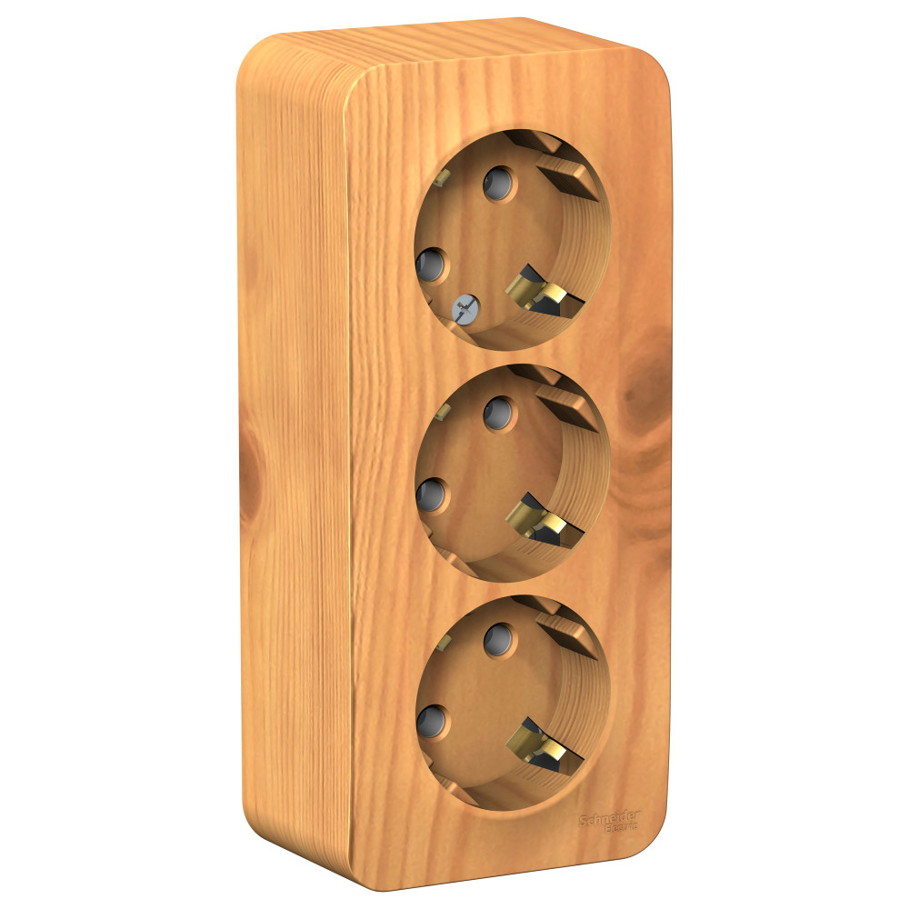 Розетка тройная с заземлением Systeme Electric Blanca, без защитных шторок, на винтах, ясень
