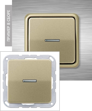 Выключатель самовозвратный одноклавишный перекрёстный с подсветкой Jung CD, на клеммах, золотая бронза