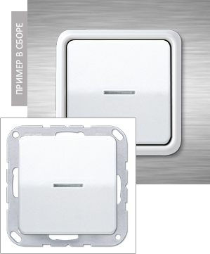 Выключатель 1-но клавишный двухполюсный самовозвратный с подсветкой, белый