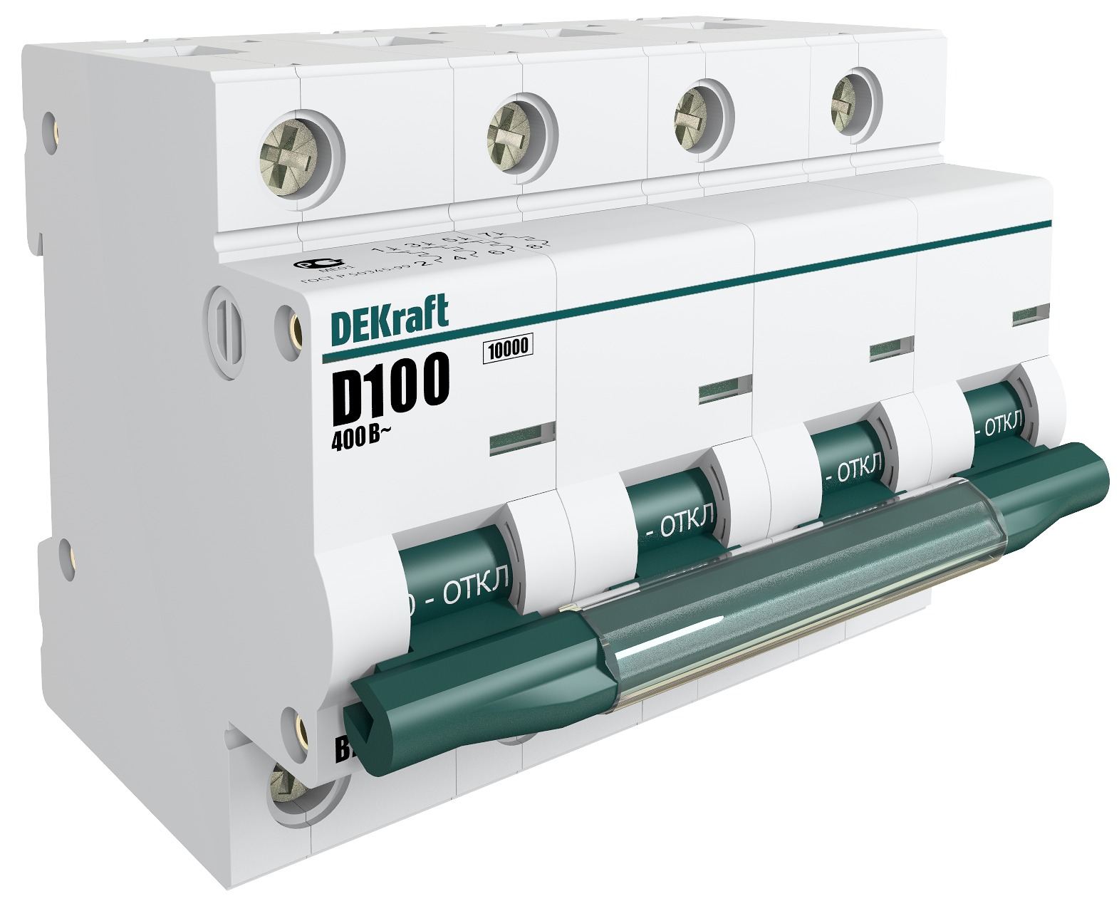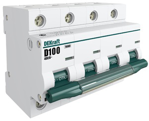 Автоматический выключатель DEKraft ВА-201, 4 полюса, 100A, 10kA, тип C, ширина 6 DIN-модулей