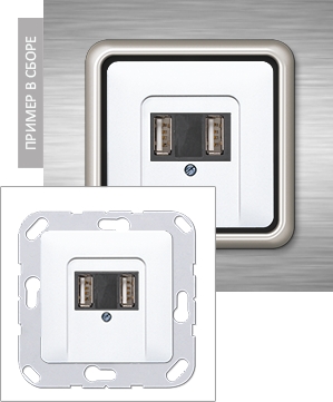 Розетка usb для зарядки Jung CD, с двумя разъёмами типа А, на винтах, платина