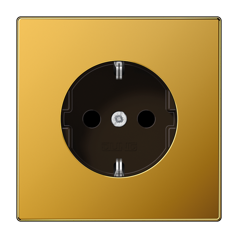 Розетка с заземлением Jung LS, с защитными шторками, на клеммах, золото (96-я проба)